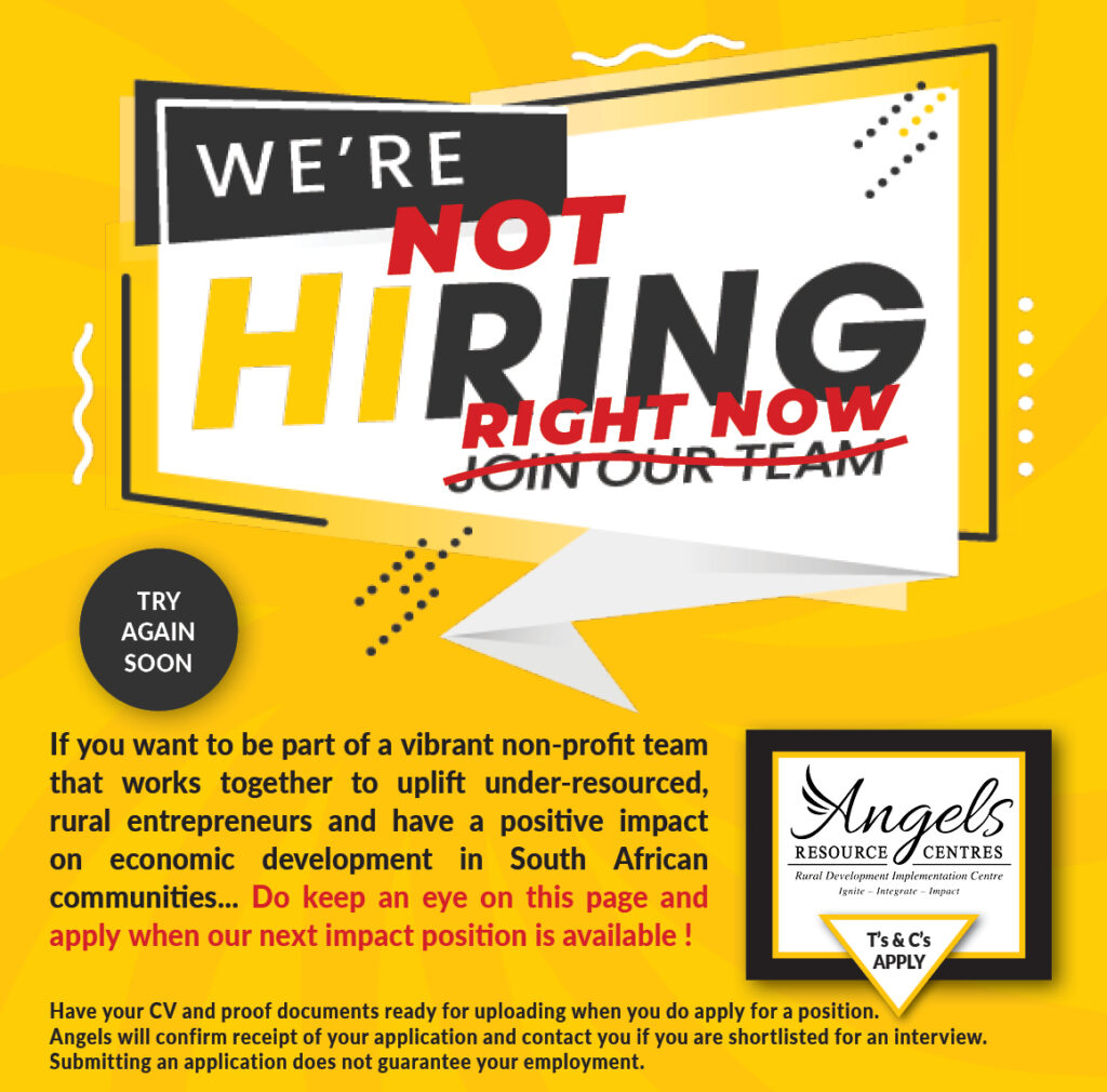 Do you want to be part of a vibrant non-profit team that works together to uplift under-resourced, rural communities and have a positive impact on economic development in South Africa? Positions offered by Angels Resource Centre are available to local residents of the communities in which we are serving. See details of current positions listed below: